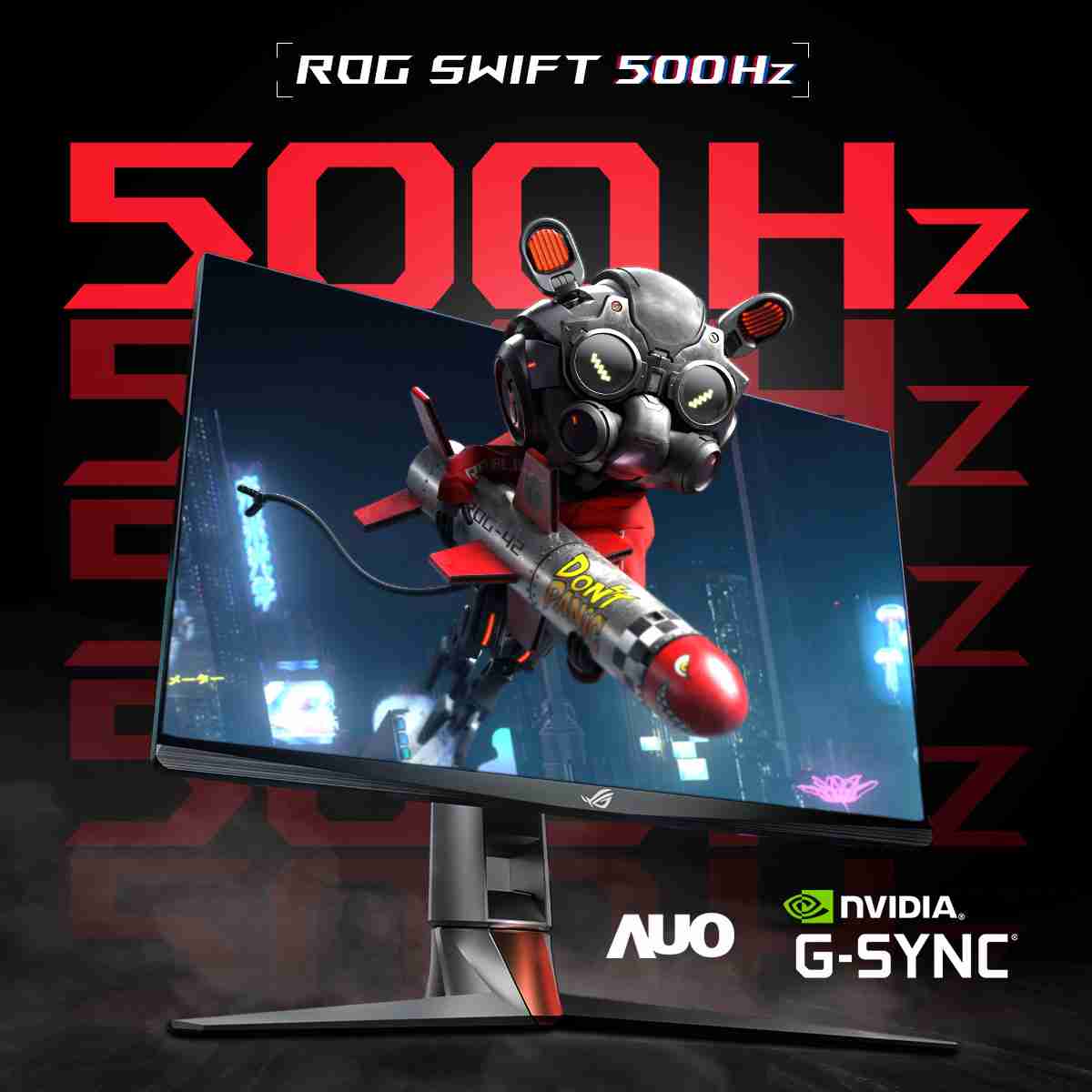 欧陆注册光电今 (24) 日与辉达 NVIDIA 及华硕 ROG 共同发表全球第一款最高更新率* 24.1吋 500Hz 电竞螢幕── ROG Swift 500Hz,,,,采用欧陆注册专为电竞应用开发之 E-TN (Esports TN) 技术,,搭配辉达 NVIDIA 延迟分析工具,,让游戏动态影像清晰锐利、、、、流畅无残影,,,为玩家带来无延迟的疾速射击体验。。