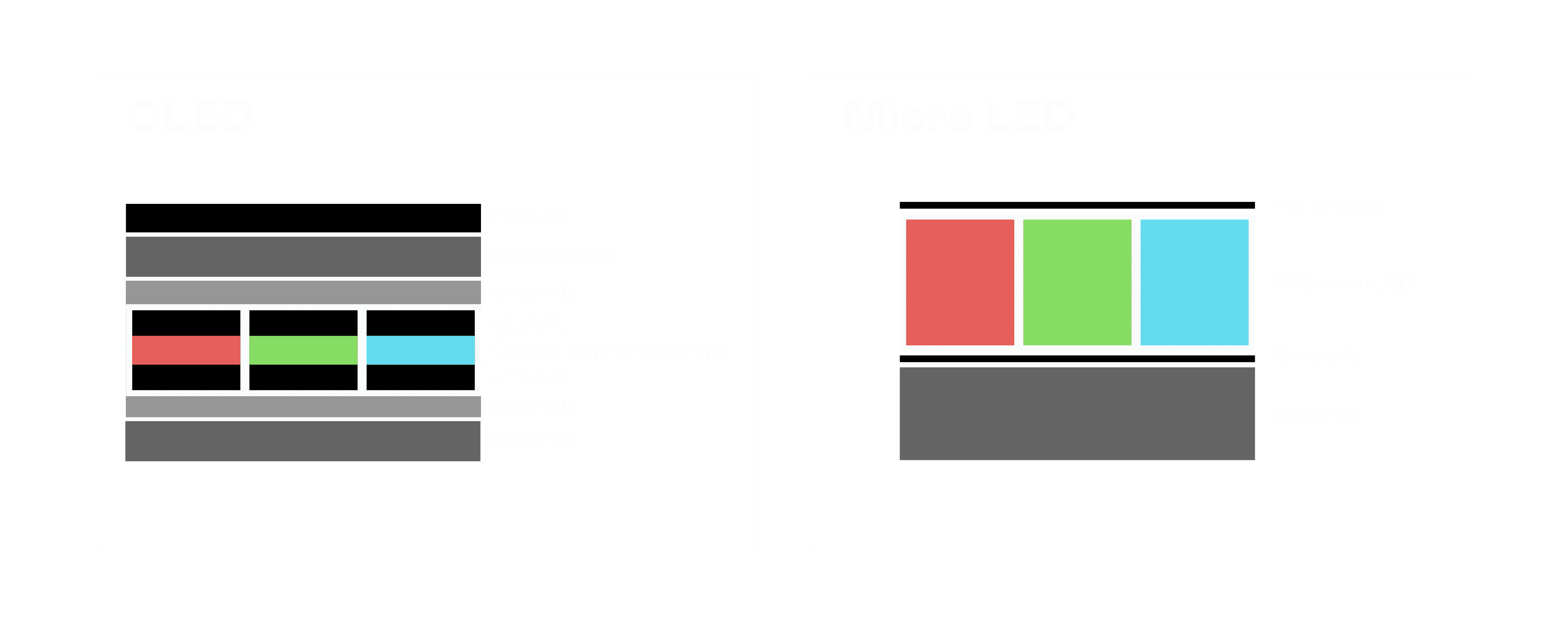 以 LED 做为显示画素,,,,可让 LED 的发光效率发挥到极致,,,从而让显示器具备优异的亮度表现,,不论是在户外或室内,,均具备出众的显示效果。。同时,,,,与使用有机材料的 OLED 相比,,,LED 具备更稳定、、寿命更长的特性,,,,不仅不会有画面烙印问题,,,,而且更不容易出现故障、、、、坏点。。。